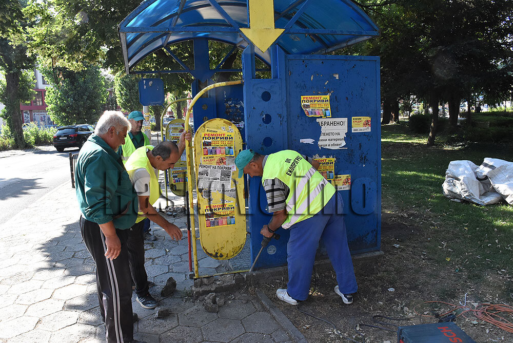 Работници на „Екопрогрес“ започнаха тази сутрин подмяната на автобусната спирка на булевард „България“ до зеленчуковия пазар.