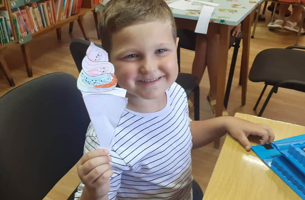 Малките читатели от Детския отдел днес играха и се забавляваха с образователната игра „Оле“. Малчуганите изработиха и оцветиха макет на най-голямото детско лакомство – сладоледа. Целта на проявите е привличането на малките читатели към книгата и библиотеката.