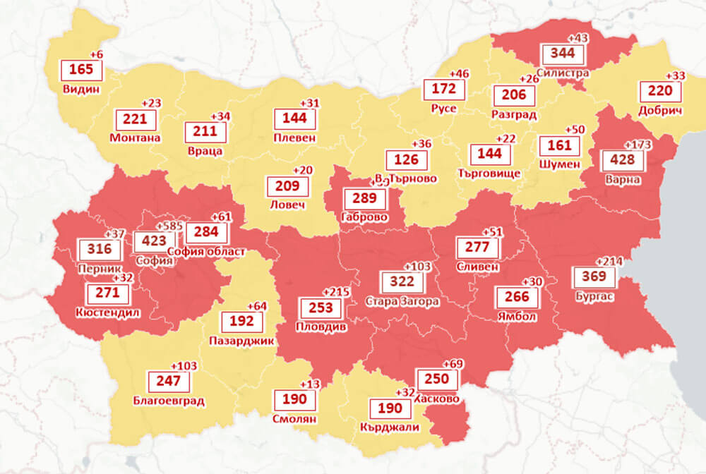 Хасковска област вече е в червената зона с 14-дневна заболеваемост от 250 на 100 000 души.