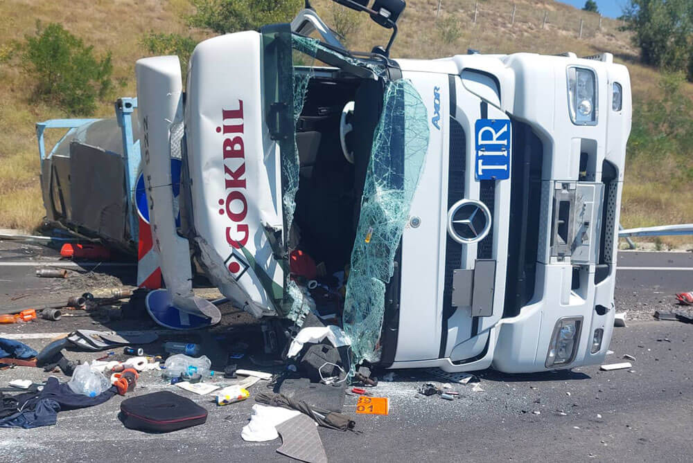 На това място движението по магистралата преминава двупосочно в едното платно заради ремонт. След сблъсъка цистерната се е завъртяла и се е преобърнала, като е затворила движението.
