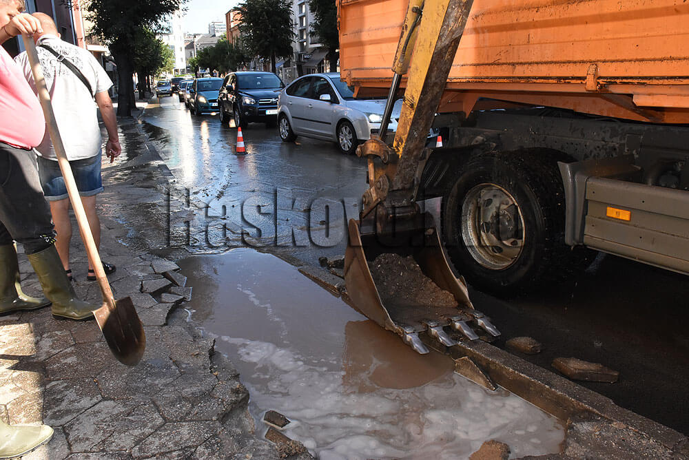 Аварията е срещу пресечката с улица „Македония“. Вода се стича до кръстовището пред Първа поликлиника.