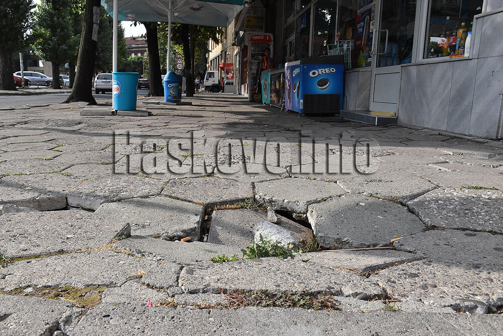 ТротоарХасковлии настояват мястото да бъде ремонтирано, защото е едно от най-оживените в града. Там неравностите стават все по-дълбоки и опасни с времето, се казва в сигнала.