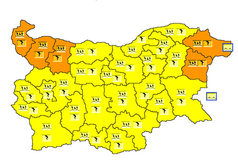 За петък жълт код за интензивни валежи и гръмотевични бури е в сила за цялата Хасковска област. Предупреждение е издадено за цялата страна.