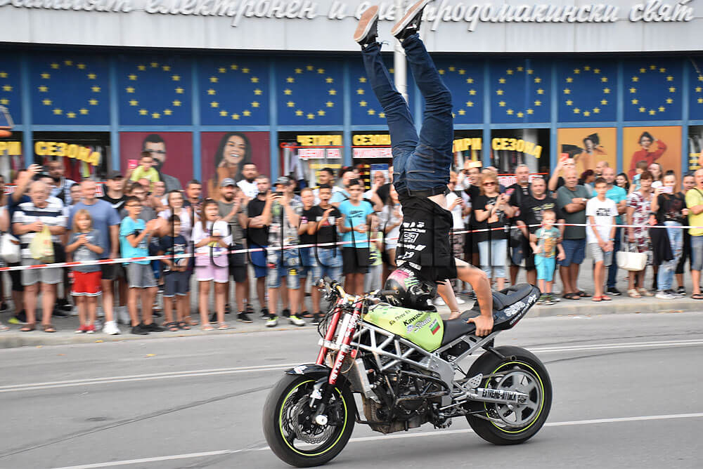 Зрелищното мото шоу и каскадите започна в 19:30 часа в отсечката на булевард „Димитър Благоев“ от улица „Ромен Ролан“ до кръговото пред спортна зала „Младост“.