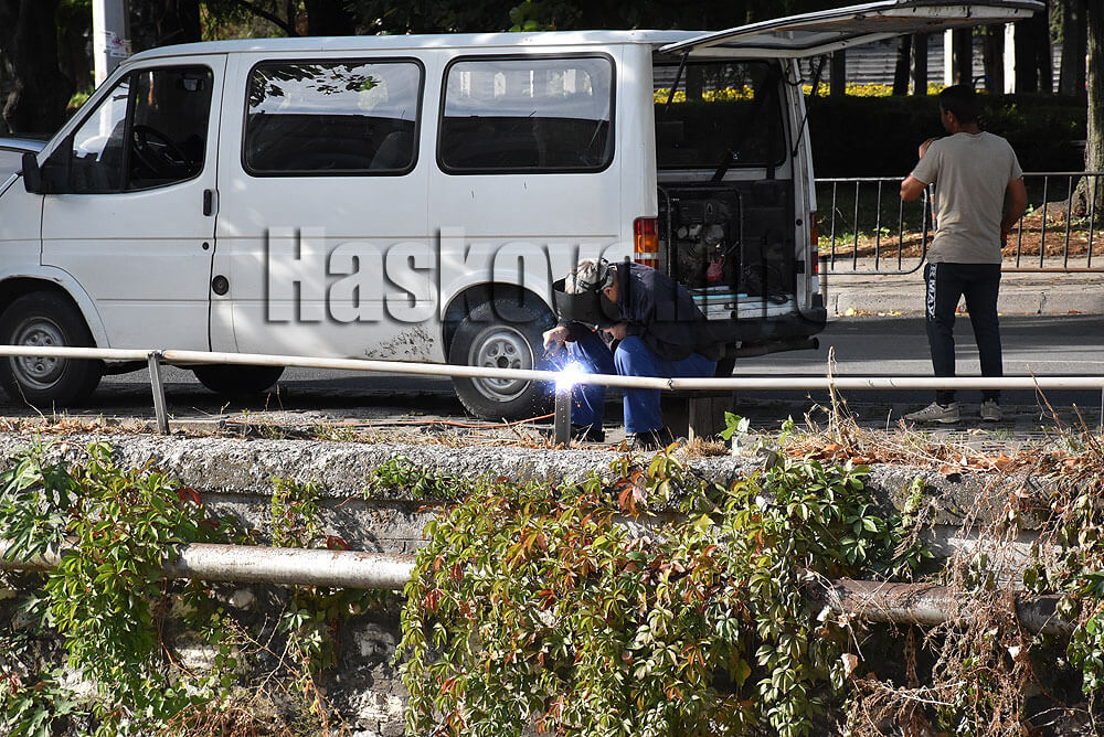 Паркингът до зеленчуковия пазар в Хасково беше обезопасен преди обяд от работници.