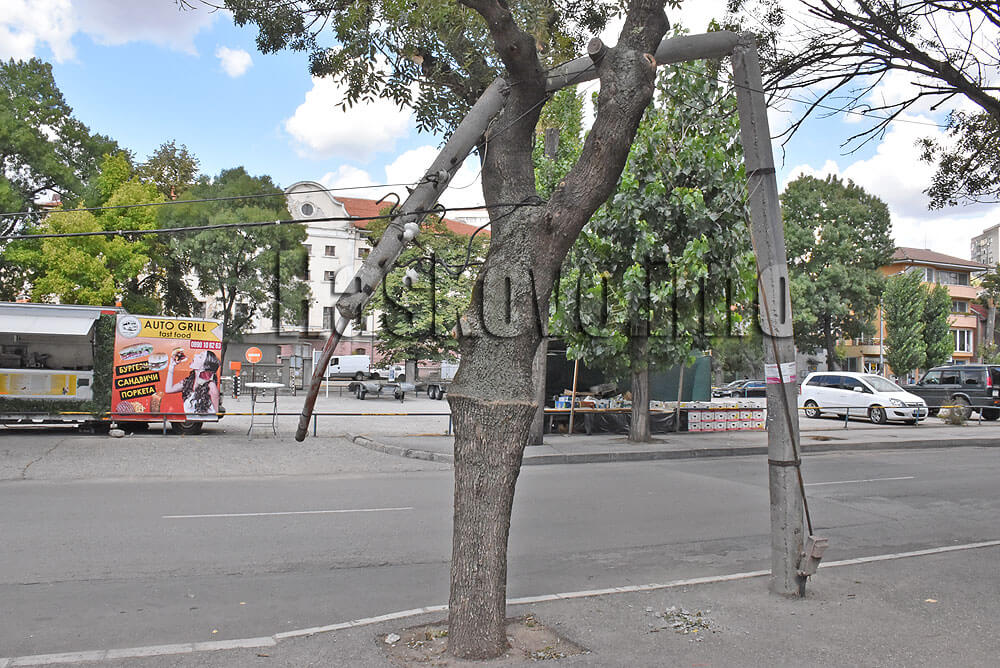 Стълб на улица „Средна гора“ между ледената пързалка и зала Спартак е доста наклонен, отдолу е разбит. Два пъти подавам сигнал до общината, но все още не е оправен…. дано не стане инцидент