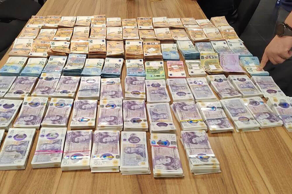 При последвалия физически контрол митничарите намерили пет полиетиленови плика, укрити във фабрична кухина под последния ред седалки. В два от пликовете са открити еврови банкноти, а в три плика – британски лири. Общото количество на недекларираните пари е 201 000 евро и 70 000 британски лири с обща равностойност 548 344 лева.