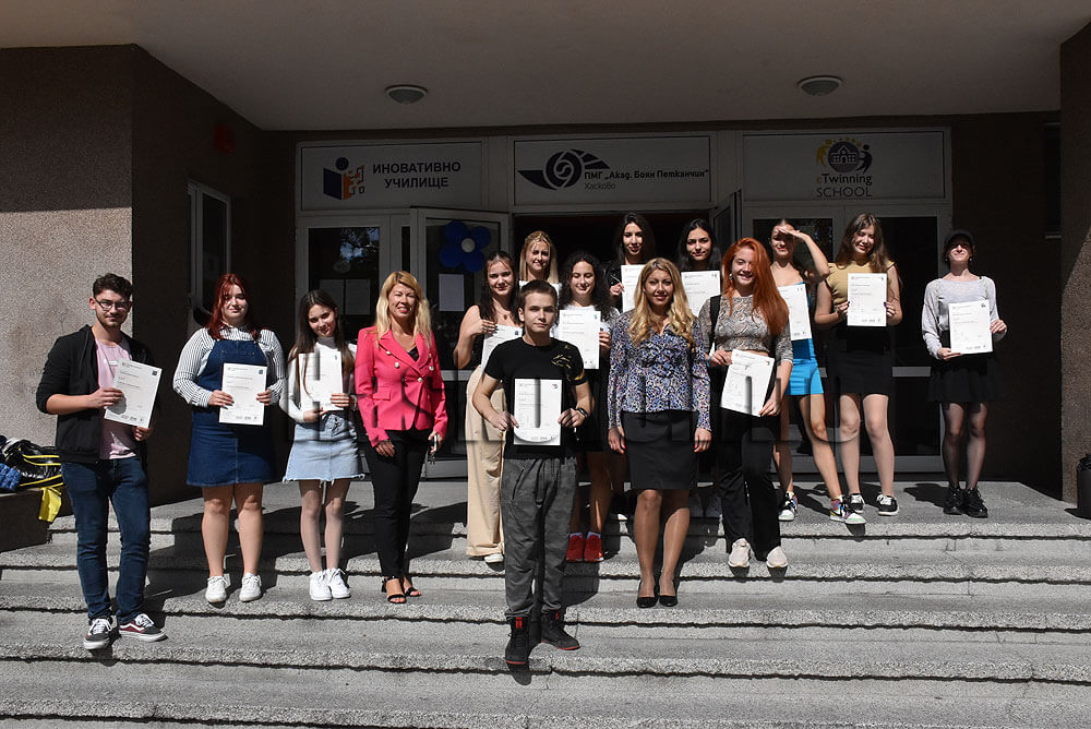 13 ученици от 11 клас на хасковската ПМГ „Акад. Боян Петканчин“ успешно положиха изпит и защитиха Кеймбридж сертификат за владеене на английски език на ниво С1.