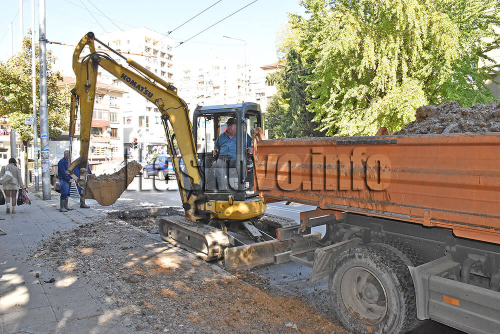 Тежката техника на водното дружество е малко след кръстовището с булевард „Раковски“ в посока автогарата. Пътното платно е разкопано за ремонта на спукания водопровод.