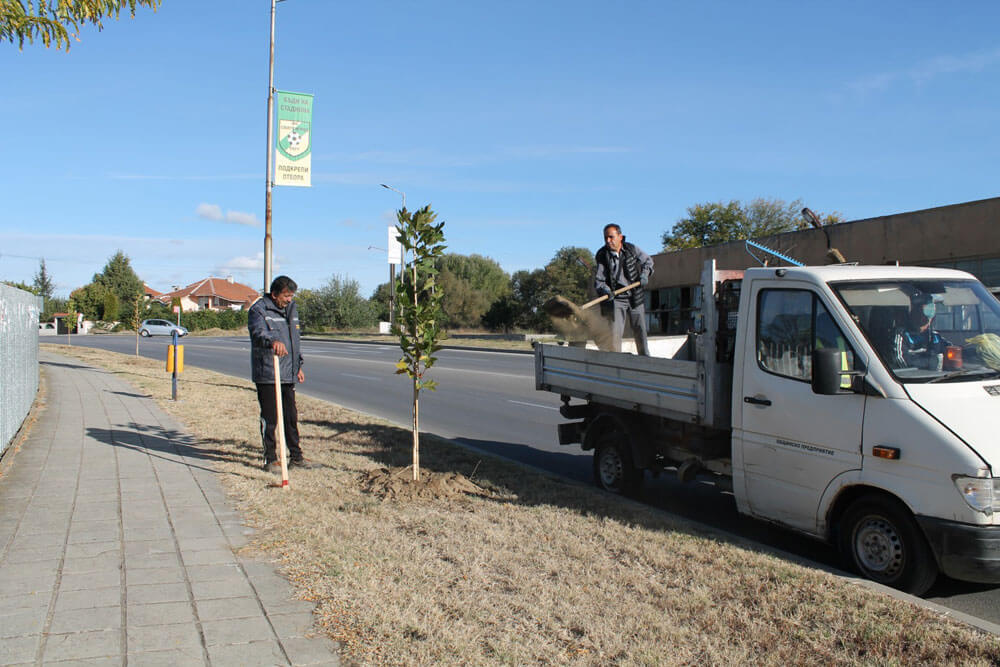 Работници на Общинското предприятие „Благоустрояване и озеленяване“ засаждат дръвчетата покрай околовръстния път, в Градския парк, парк „Младежки“ и на улица „Крайречна“.