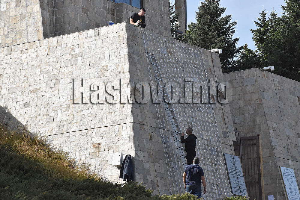 Нова коледно-новогодишна украса се монтира на монумента „Св. Богородица“ в Хасково.
