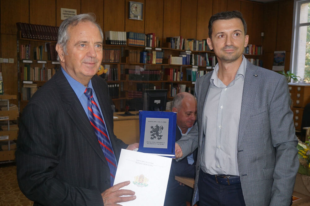 Заместник-областният управител Мартин Узунов връчи на проф. Янков поздравителен адрес и почетен плакет от името на областния управител Минко Ангелов за изключителни заслуги в научноизследователската дейност. Проф. Ивайло Христов и проф. Христо Матанов дадоха високи оценки за трудовете на проф. Янков.