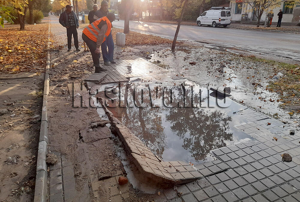Част от тротоара по булевард „Димитър Благоев“ в Димитровград пропадна тази сутрин заради ВиК авария.