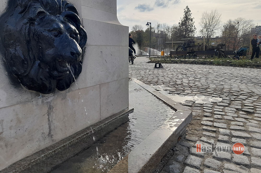 Вода отново потече от лъвските глави на паметника-чешма на загиналите от Десети пехотен родопски полк в новия парк зад ДНА в Хасково.