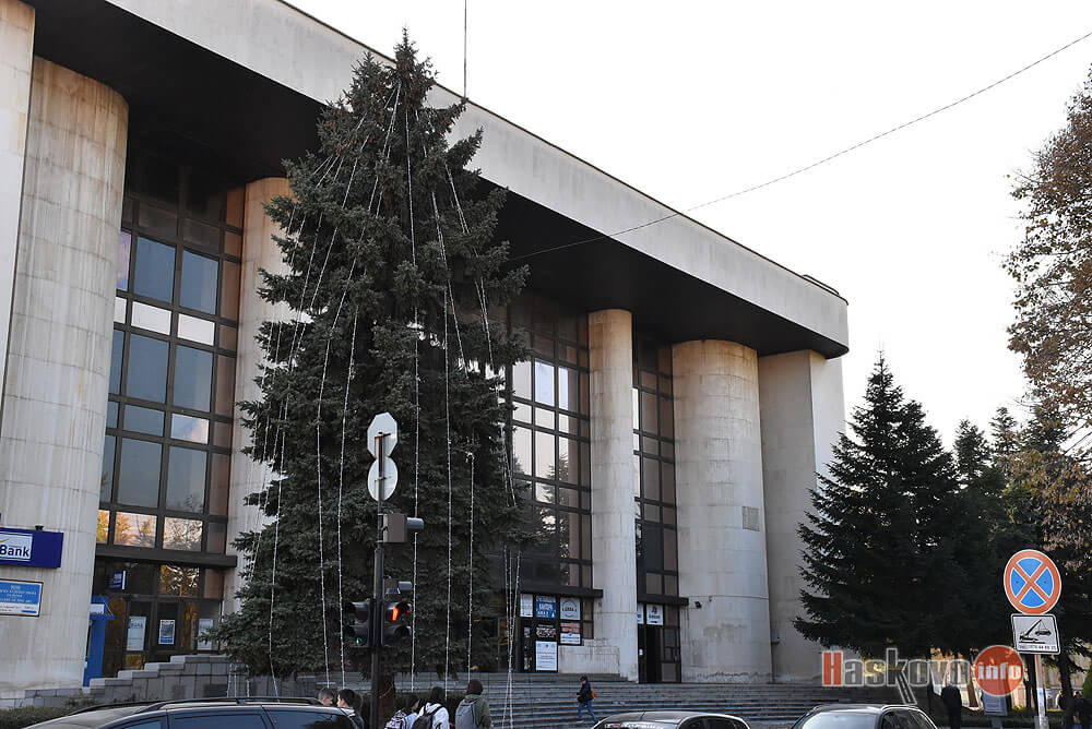 Високата елха пред Бизнес центъра в Хасково вече е с Коледно-новогодишна украса.