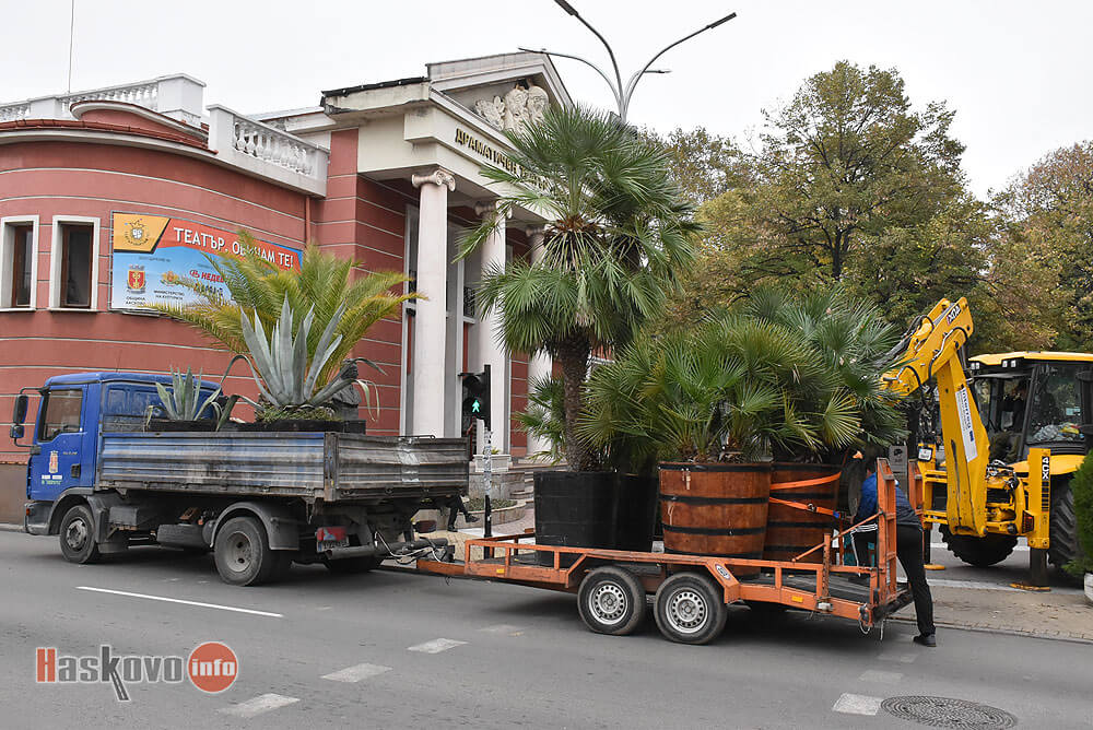 Палмите и другите екзотични растения, които изкараха лятото в центъра на Хасково ще зимуват в общинската оранжерия.