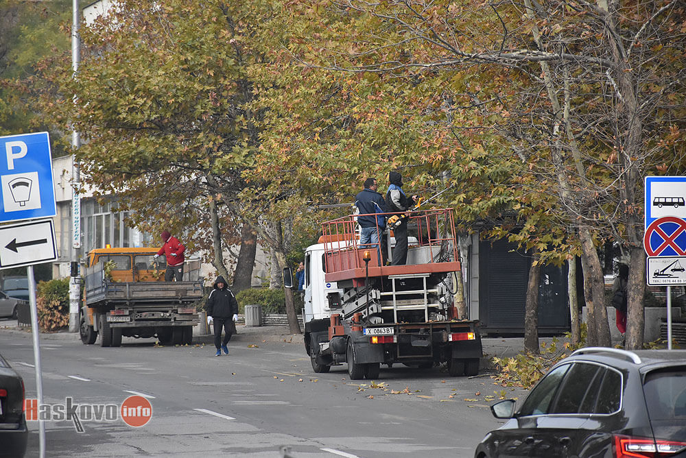 Работници извършиха санитарна сеч по булевард "България" до Младежкия център в Хасково.