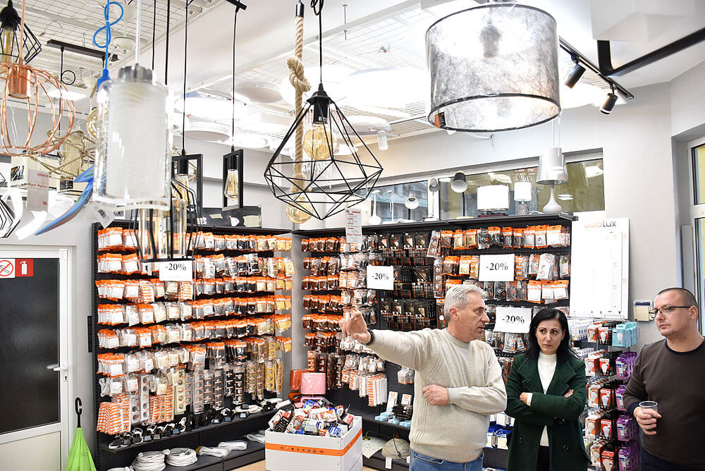 Търговският обект предлага богата гама интериорно, фасадно, градинско и празнично осветление. В магазина можете да намерите и електроматериали, лед крушки, лед ленти и много други. Има и смарт осветителни тела, музикални, с дистанционно управление, управлявани чрез приложение на телефон.