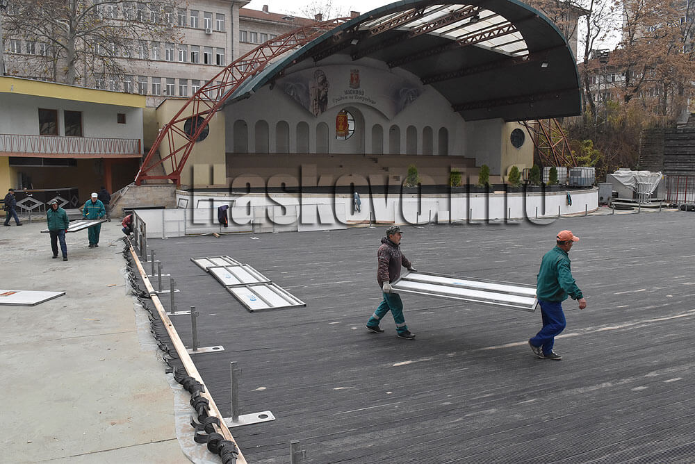 Работници на „Екопрогрес“ вече монтират ледената пързалка на площадка „Спартак“ в Хасково.