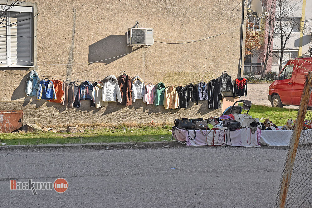 Шарена сергия е разпъната до един от блоковете на хасковската улица "Акация".