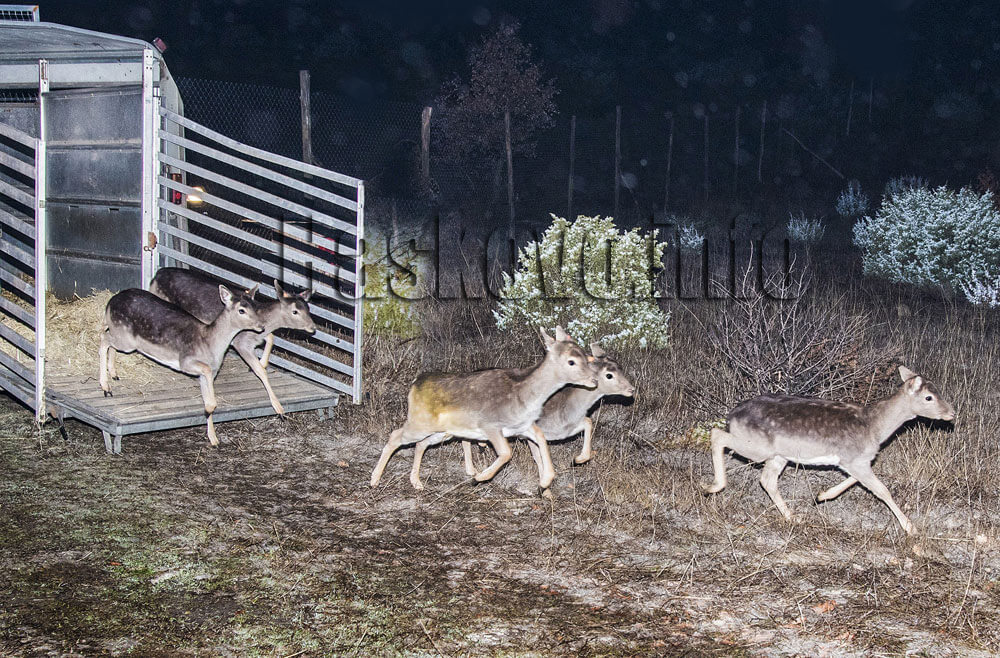 На територията на Хасковска област транспортът бе посрещнат от председателя на Ловно-рибарското сдружение в Хасково Желязко Живаков, сътрудници и съветници с опит в разселването на едър дивеч. Всички животни притежават необходимите ветеринарно-медицински документи и специални сертификати. Те са маркирани с капсулирани чипове, осигурено е денонощното им наблюдение със специализирано оборудване и охрана.