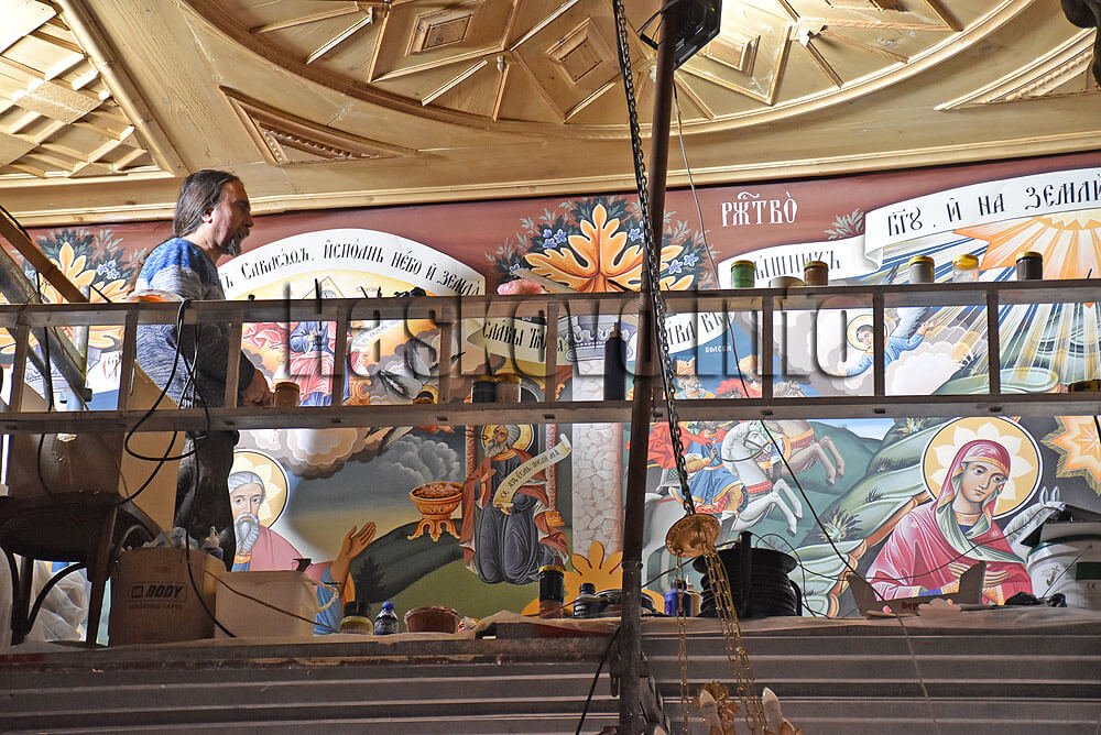 Мирослав Асенов вече е готов с две от сцените на една от стените. Едната изобразява Рождество Христово, а втората е със Свети пророк Исаия. Скелето ще бъде свалено за Ивановден – 7 януари, когато архиерейска света литургия се очаква да отслужи пловдивският митрополит Николай.