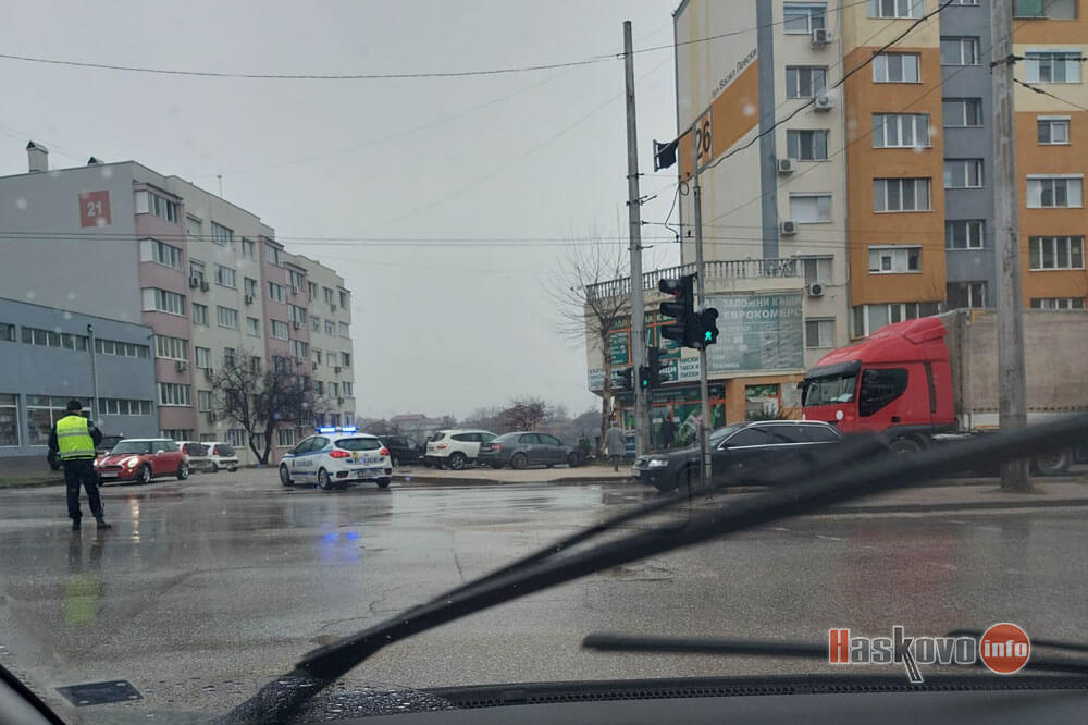 Тир аварира по обяд на булевард "Васил Левски" в Хасково и причини задръствания.
