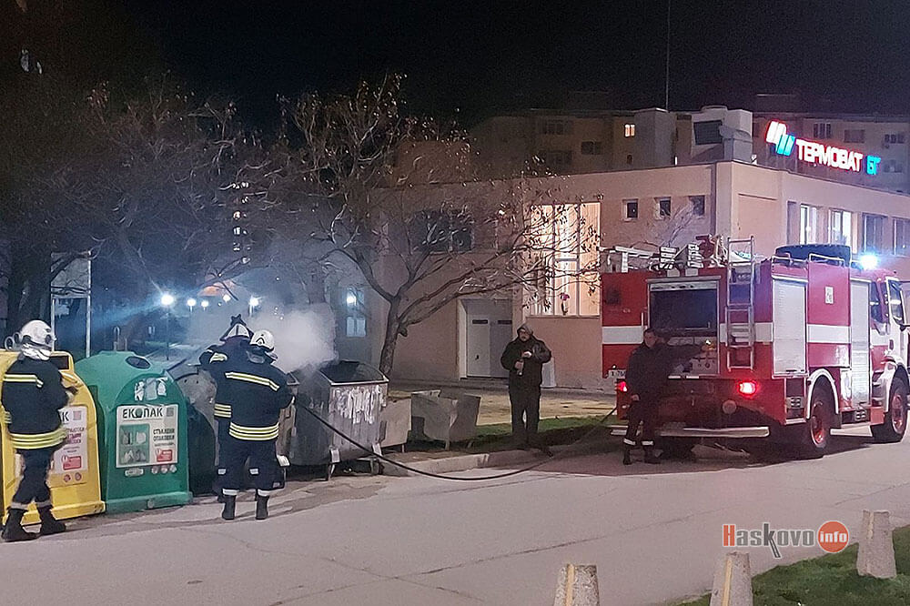 Пожар в контейнери гасиха тази вечер пожарникари в Хасково. Огънят пламнал привечер в кошове за боклук край бл. 34 в квартал „Орфей“. Предполага се, че някой е изхвърлил неизгасени въглени в тях.