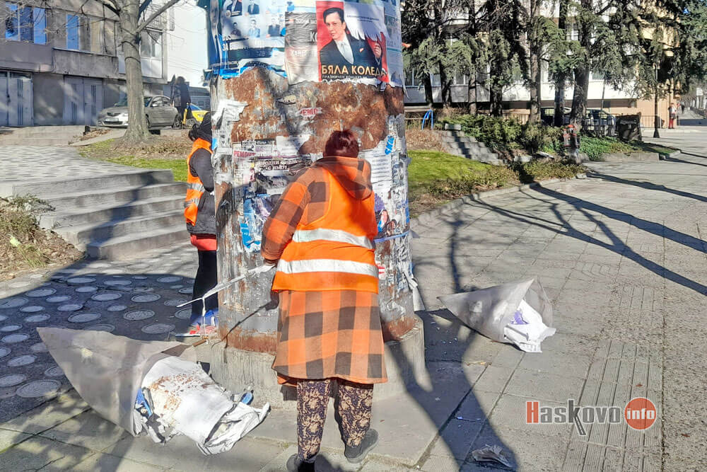 Разчистват старите плакати в навечерието на новата предизборна кампания в Хасково.