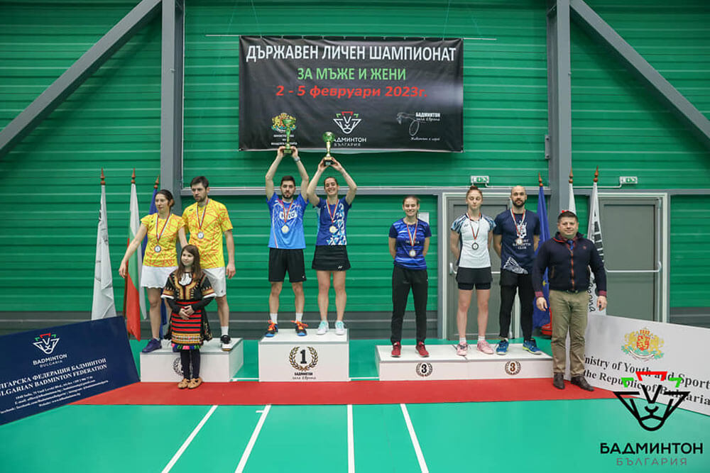 Те станаха шампиони на единично, на двойки и на смесени двойки. На финала водачката в схемата Стоева победи номер 2 Калояна Налбантова с 22:20, 21:12, съобщава БНР. Бронзови медали на единично спечелиха Таня Иванова и Пейо Бойчинов.
