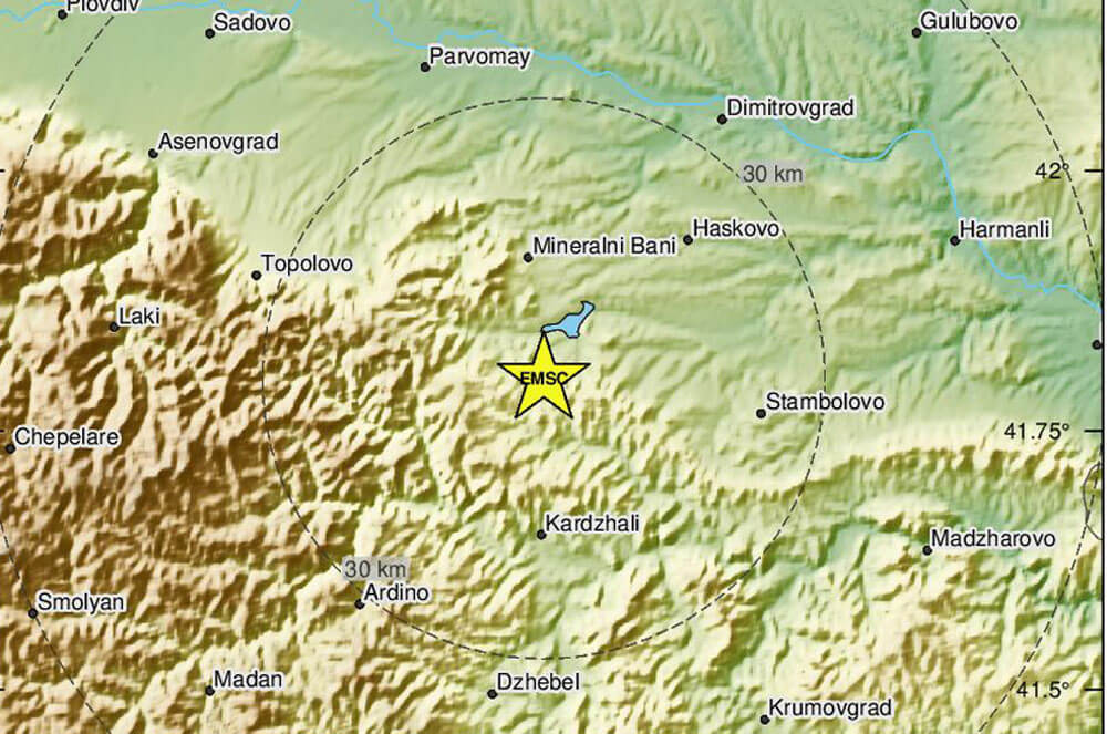 Земетресение е регистрирано следобед между Хасково и Кърджали, съобщават от Европейския сеизмологичен център.
