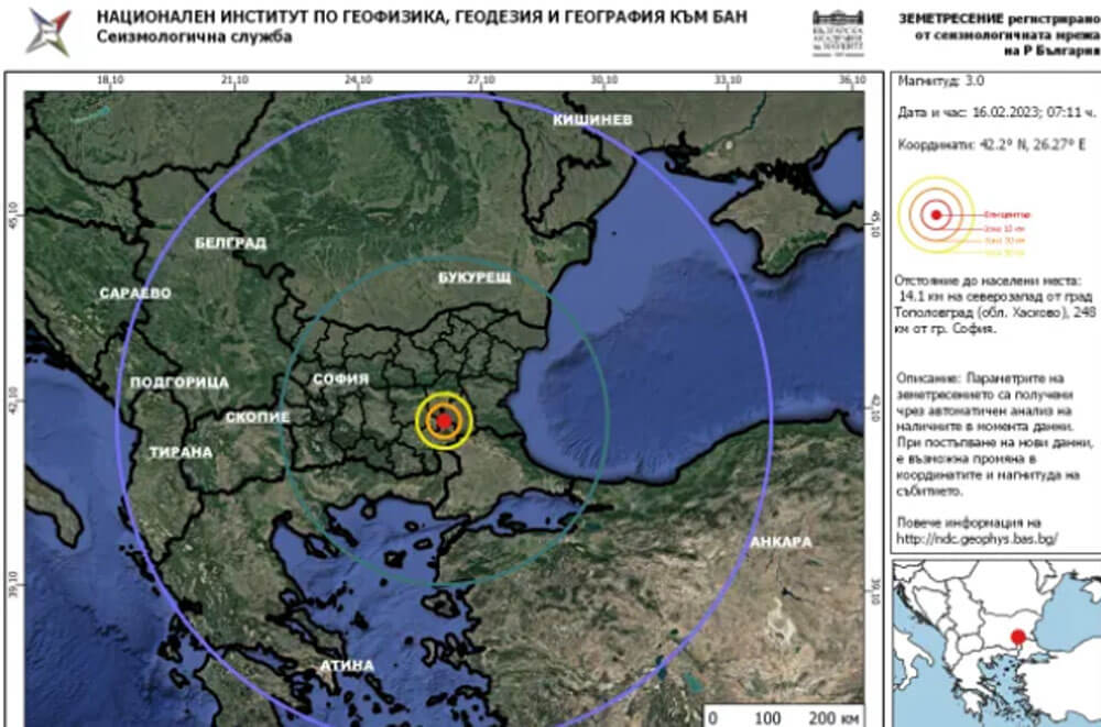 Вторият трус е в същия район – на 15.5 км северозападно от Тополовград и е регистриран в 7:57 часа в магнитуд 3.2 според БАН и 3.1 според ЕСЦ.