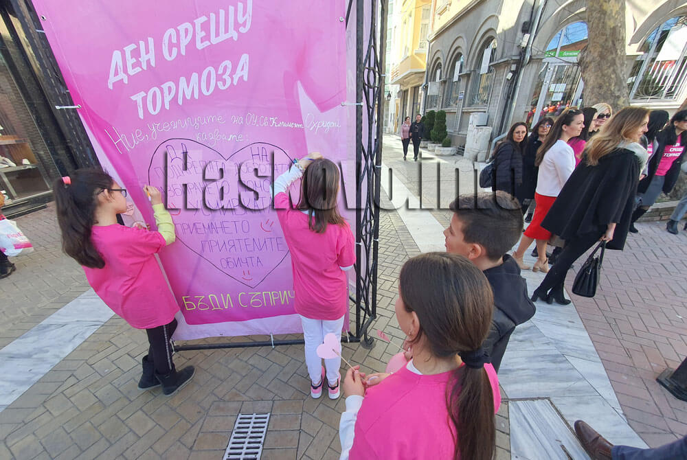 Стотици хасковски ученици се включиха днес в кампанията „Не на тормоза“. Изявите в училищата по обяд се пренесоха до часовниковата кула в центъра на града.