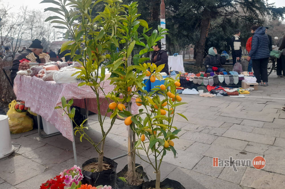 Мандаринови дръвчета се продават по 20 лв. на пазарчето пред Малкия бизнес център в Хасково.