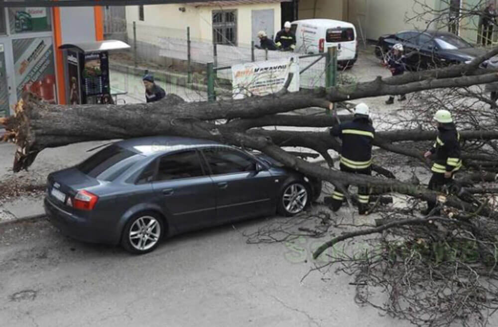 Сигнали към пожарната заради силния вятър, дърво падна върху кола в Харманли