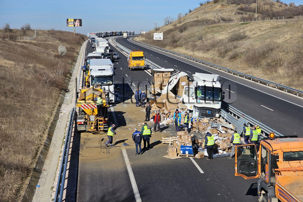 Два тира се удариха и затвориха магистрала „Марица“ край Свиленград
