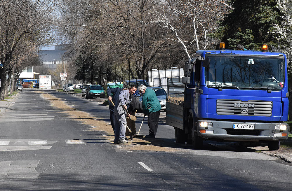 Следобед екип на „Екопрогрес“ започна опесъчаването на булевардите, като движението беше временно затруднено. От КОРЗ пък са съставили акт на шофьора на камиона.