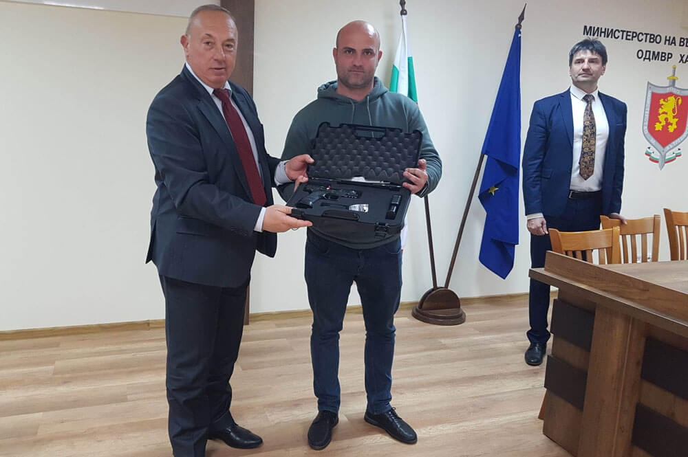 Заместник-министърът раздаде и шест електропреносими пистолета „Тейзър“ за служители от Областната дирекция на МВР в Хасково. Той подчерта, че ползването на Тейзър-ите ще бъде възможно след преминато обучение.