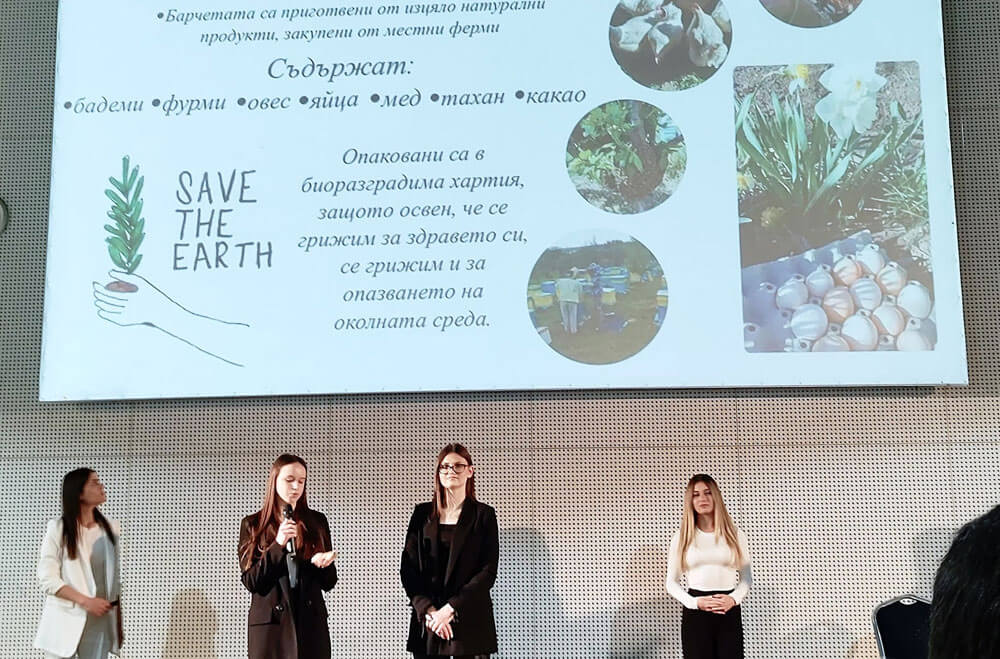 Ден по-рано отборът на гимназията BIOFIT – Калина Чавдарова, Мариета Димитрова, Делина Делчева и Симона Митева, в конкуренция с 46 отбора от страната се класира сред първите 8 и достигна до финалния кръг на друго национално състезание по предприемачество – „Учебна компания“. Ръководител на отборите е Дарина Влайкова, похвалиха се от Езиковата гимназия.