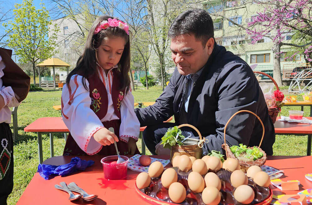 На Велики четвъртък кметът на Димитровград Иво Димов боядисва великденски яйца с децата от градина „Слънце“, съобщават от общината.