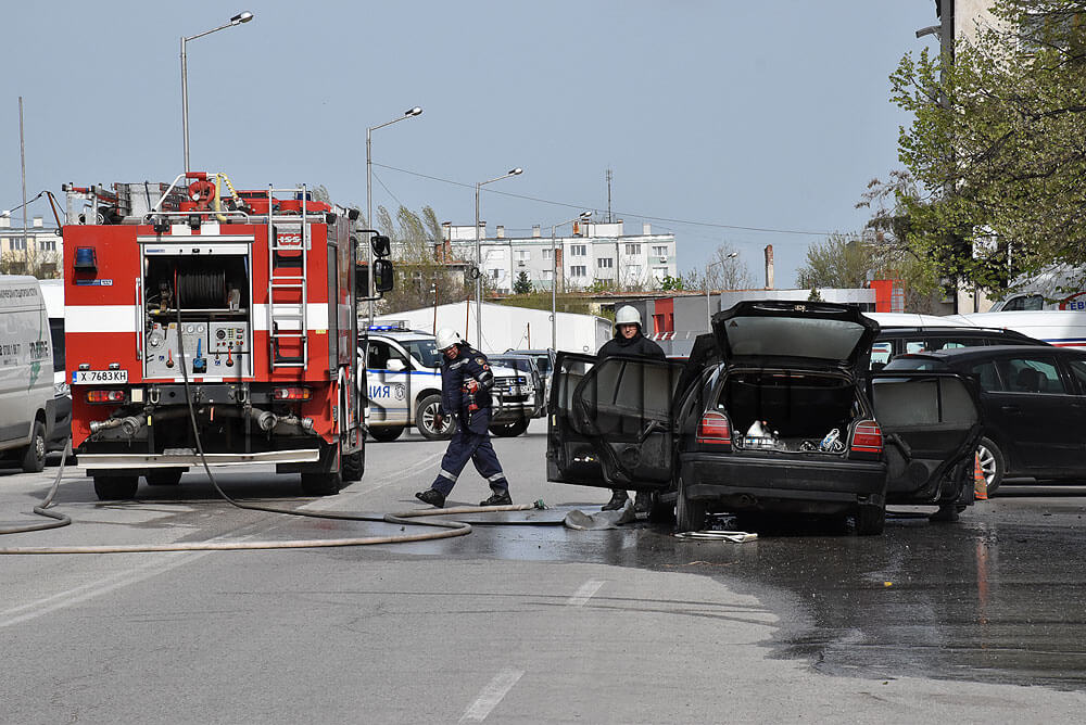 Автомобилът е почти напълно изгорял. Изясняват се причините за избухването на пожара.