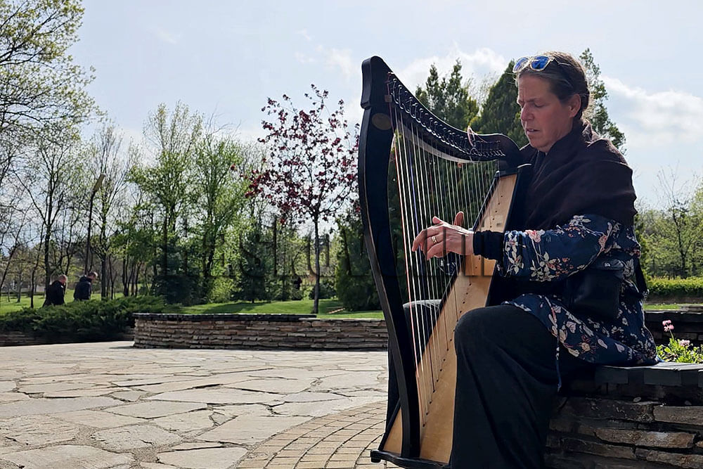 53-годишната холандка, която от години живее в Ирландия, Аня Бакер измина 4 500 километра пеша с арфа на гърба, за да се озове в Хасково на Великден. Това обаче е само една спирка по дългия й път, който трябва да я отведе до Йерусалим.
