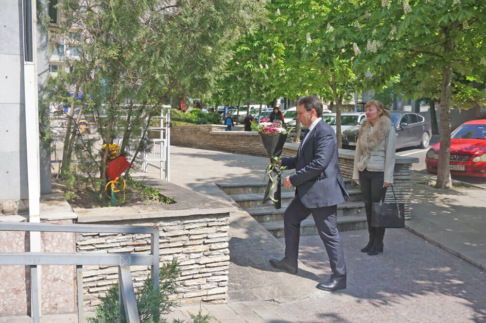След заседанието Ангелов поднесе цветя пред паметната плоча на загиналите при трудови злополуки пред сградата на НАП – Хасково.