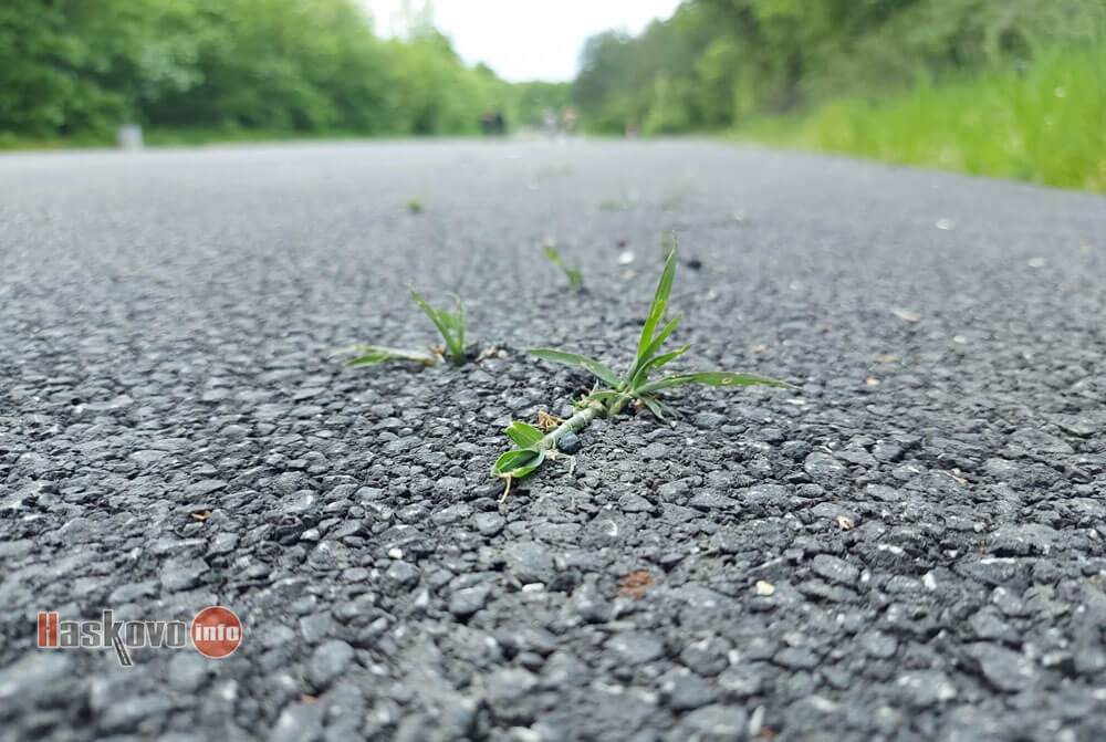 Дори и асфалтът не може да спре упорството на природата. Трева успява да пробие и да се развива на една от алеите на Кенана.