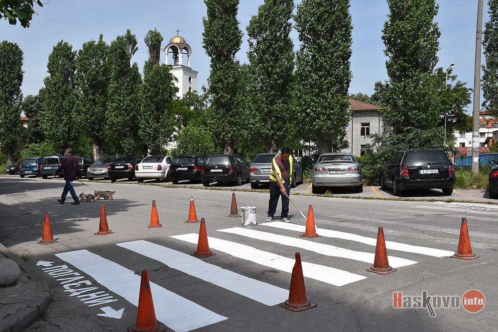 Работници от „Екопрогрес“ започнаха с освежаването пешеходните пътеки в Хасково.