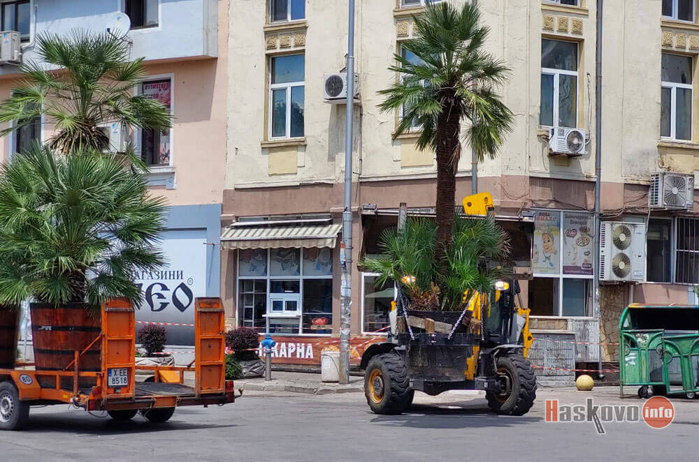 С настъпването на лятото в центъра на Хасково се поставят палми и други екзотични растения.