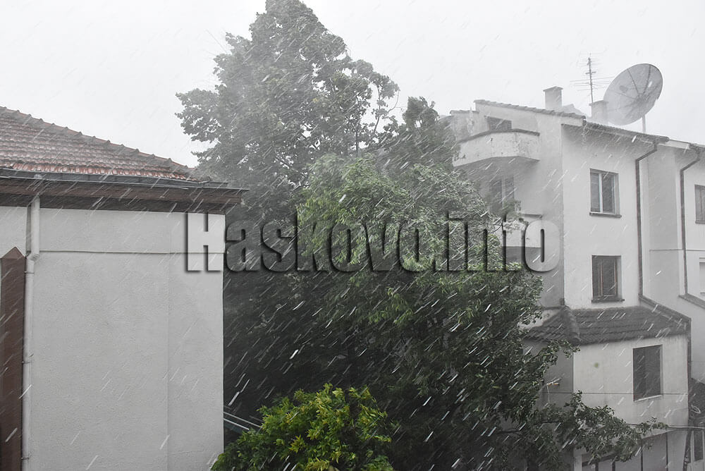 15 литра дъжд на квадратен метър е паднал в Хасково за почти 40 минути. Скоростта на вятъра е близо 83 км/ч, съобщиха за Haskovo.info от метеорологичната обсерватория. Няма данни за паднала градушка.