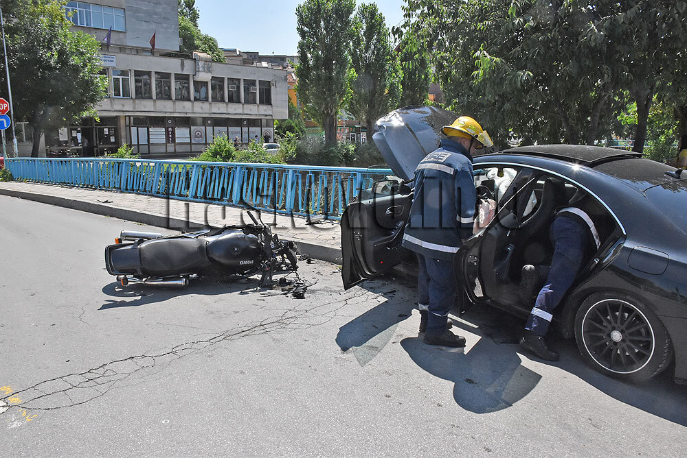 Мерцедес блъсна моторист и се разби в моста на „Лебеда“