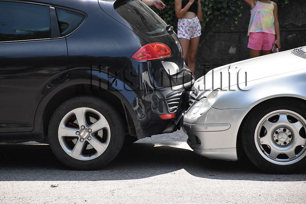 Мерцедес и Сеат с две малки деца в него се удариха на улица „Панорама“ при опит да се включат в интензивното движение по булевард „Освобождение“. Немското возило се е блъснало в намиращия се пред него Сеат.