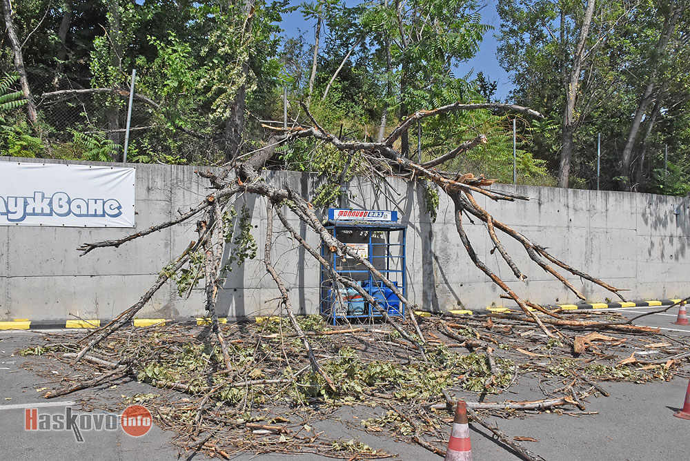 На косъм от инцидент се размина преди дни хасковска бензиностанция на булевард „Васил Левски“ след падане на изсъхнало дърво.